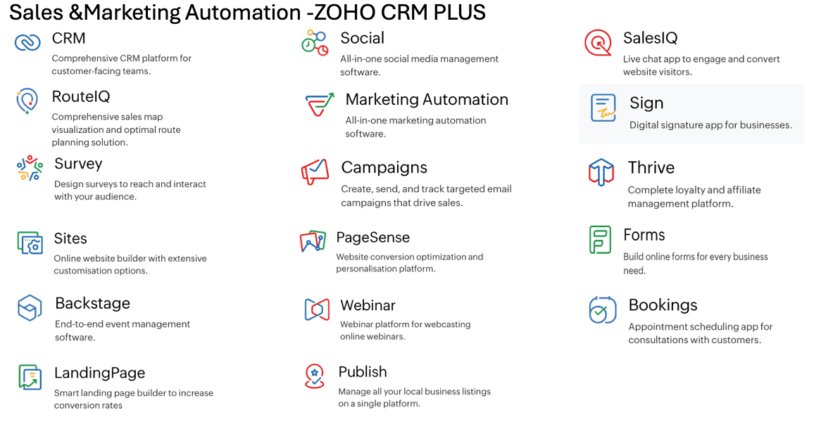Zoho CRM Plus brings your entire customer-facing teams—sales, marketing, support, and operations—onto a single integrated platform. Empower your business to deliver consistent, personalized experiences across every customer touchpoint. With unified data, real-time engagement, and ROI insights, your customer stays at the heart of every interaction.